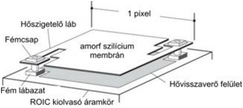 3. ábra: Amorf szilícium mikrobolométer egy pixel méretű érzékelője